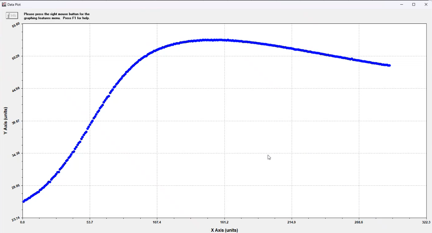 Plot showing how a single fold mirror pad heats up during the polishing process. On the x axis is time in minutes and the y axis shows temperature in degrees centigrade