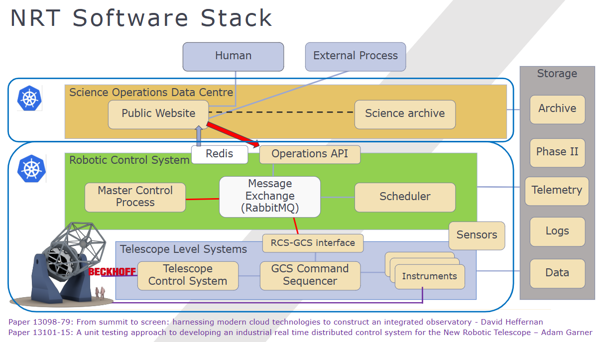 An illustration of the NRT software stack including the different systems including the SODC, RCS and TLS.