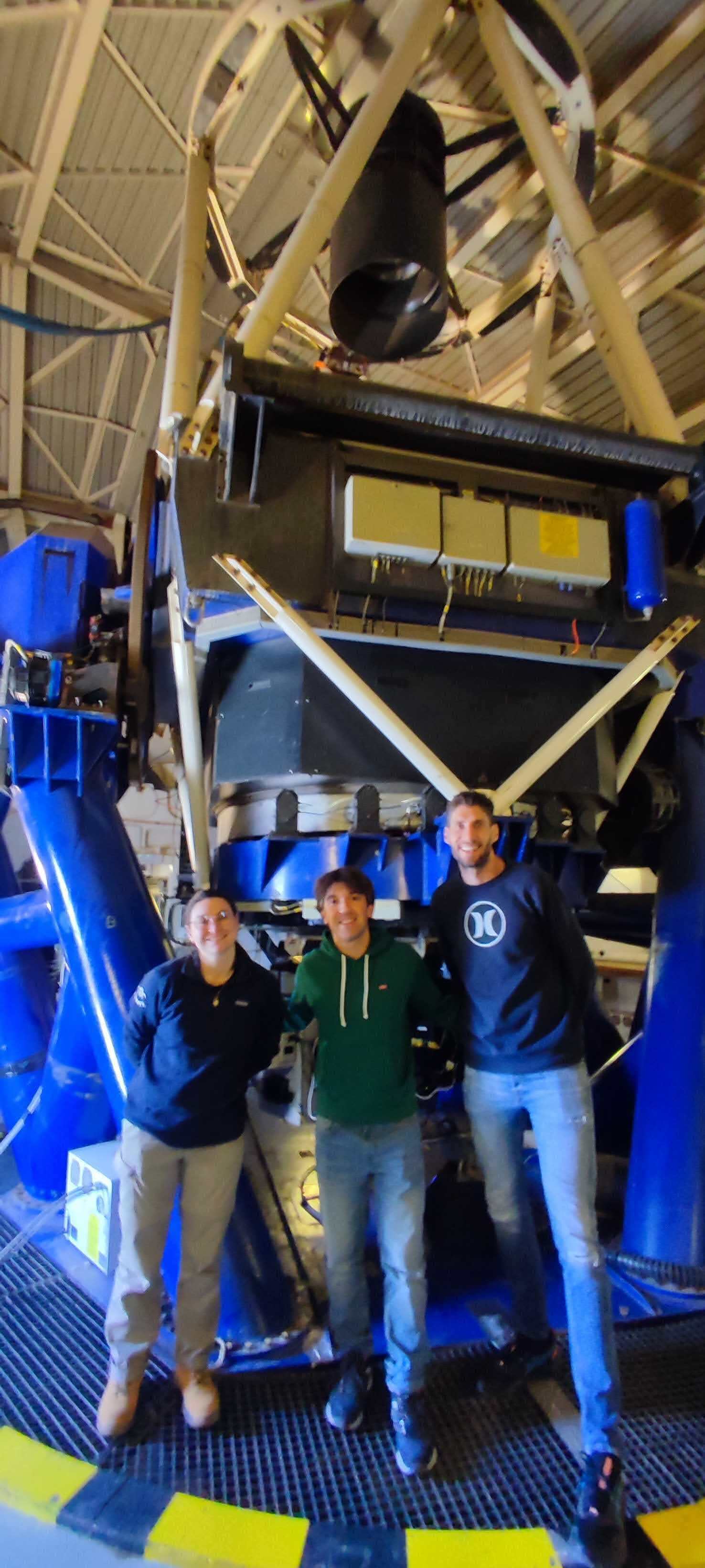 Left: Chloé, Alberto and Cesar at the Liverpool Telescope. Right: Wavefront sensor on the Liverpool Telescope.